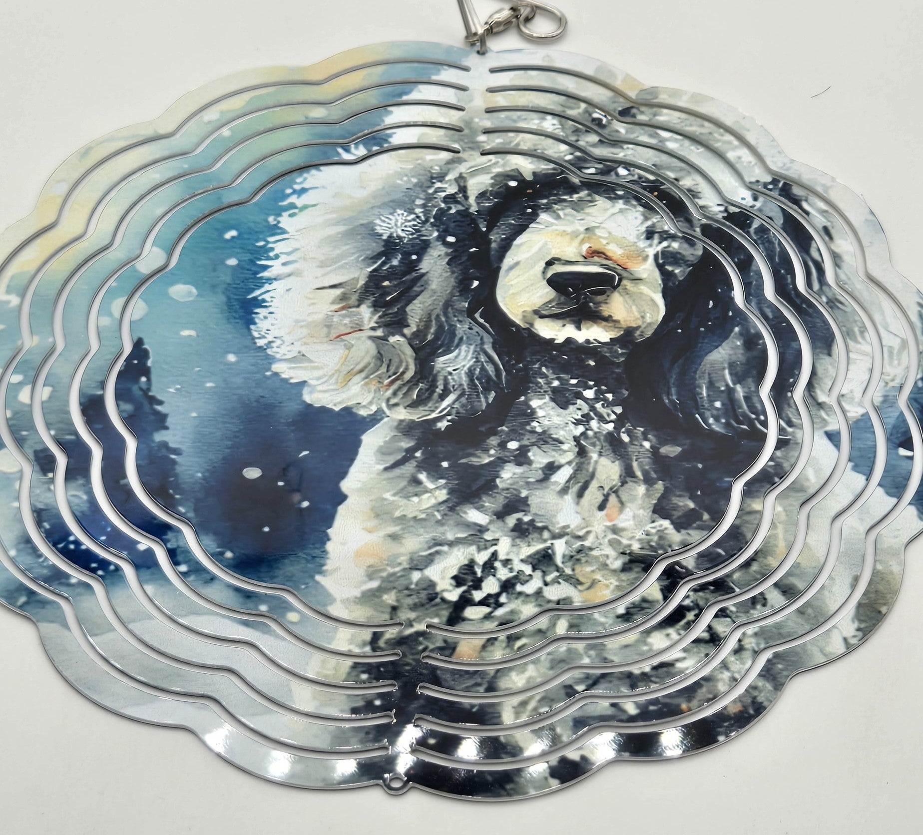 Winter Poodle Dog Wind Spinner – Outdoor Garden Art, Pet Memorial Gift, Snowy Dog Lover Décor